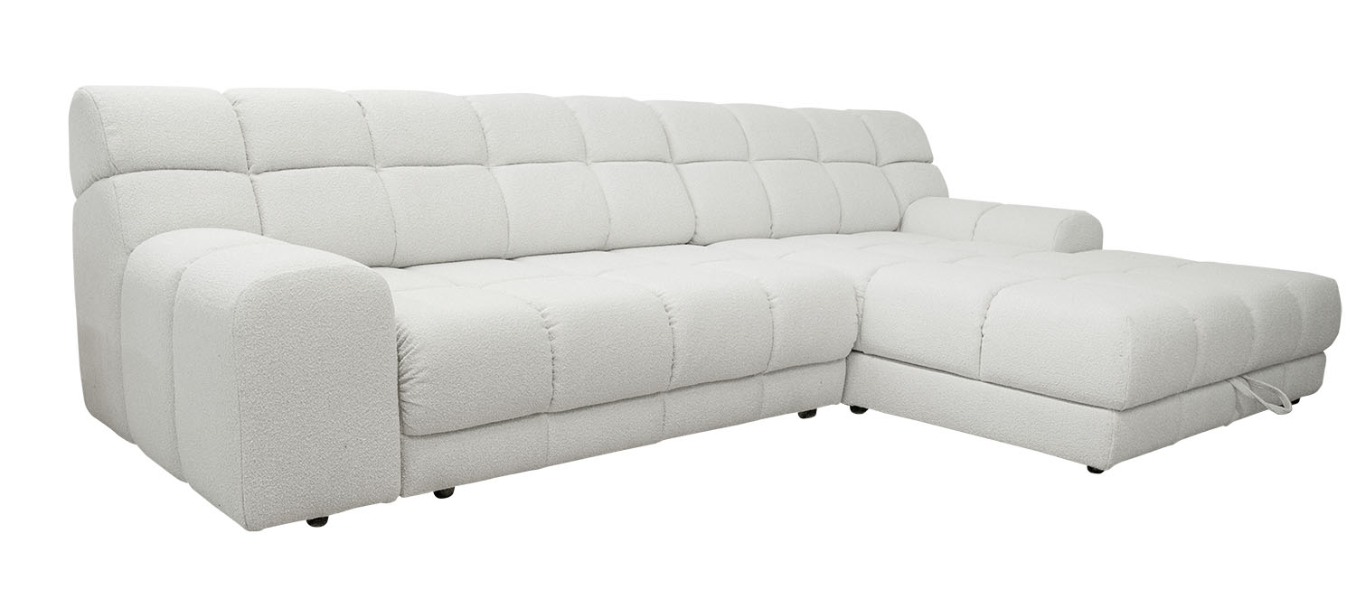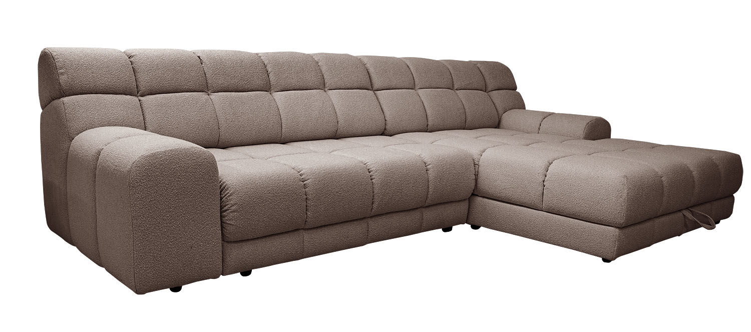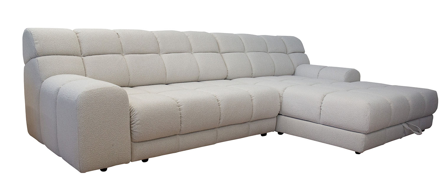 Стильная модель премиум-класса и смелый выбор для тех, кто ценит комфорт и ультратрендовый дизайн. Глубокие втяжки добавляют объем и создают эффектный визуальный акцент, а плавные линии подлокотников и мягкие боковины делают диван по-настоящему уютным.