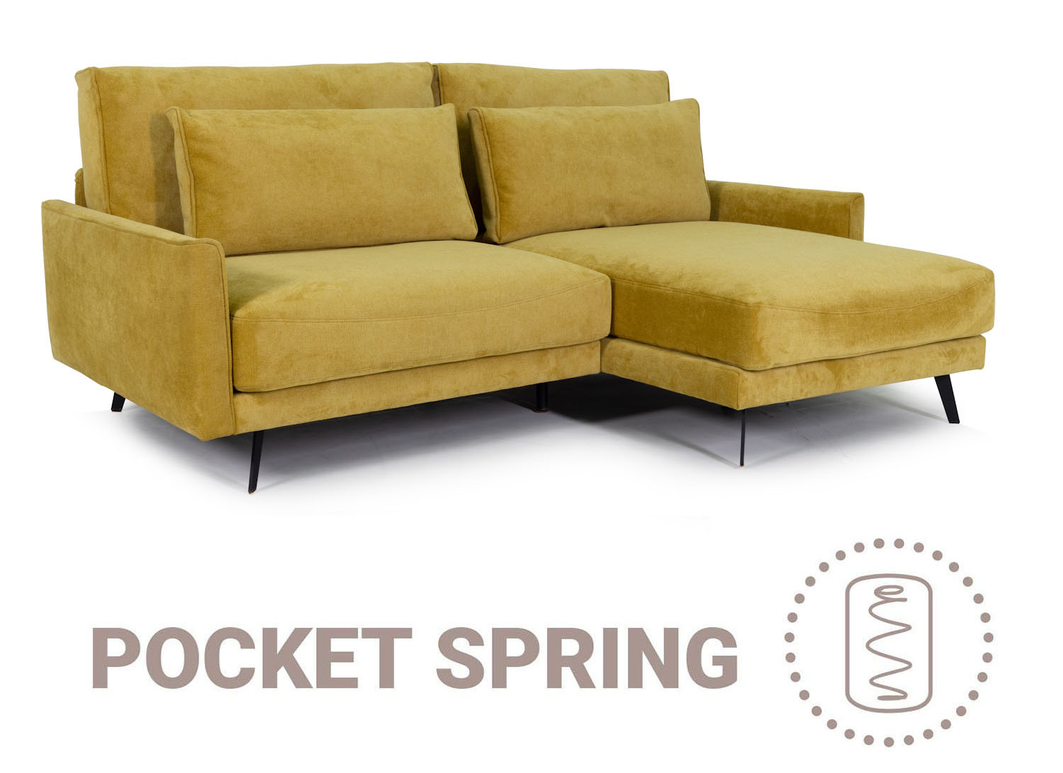 Тонкие металлические опоры высотой 15 см подчеркивают современный дизайн и создают ощущение простора, а декоративные подушки с наполнителем «Soft+» добавляют уюта.