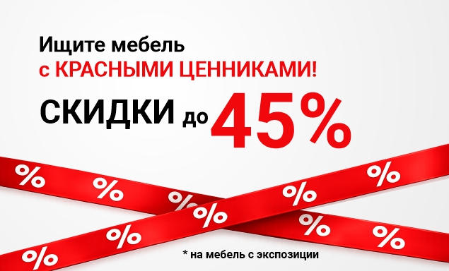 Во всех фирменных салонах – мебель в наличии со скидками до 45%.