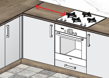 9) Для того, чтобы избежать вероятности получения травм и ожогов, необходимо учесть следующий момент: не размещать плиту рядом с угловым столом: духовку будет сложно открыть, а раскаленный воздух будет попадать на фасад. Между ними должно быть расстояние не менее 50 мм. Если же угловой модуль предназначен под мойку, то расстояние не менее 150 мм.