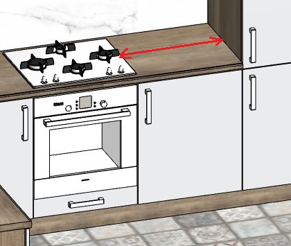 В тоже время, от рабочей поверхности плиты до навесного шкафа расстояние должно быть не менее 50 см. Напомним, что столько свободного места следует оставить по обеим сторонам плиты.